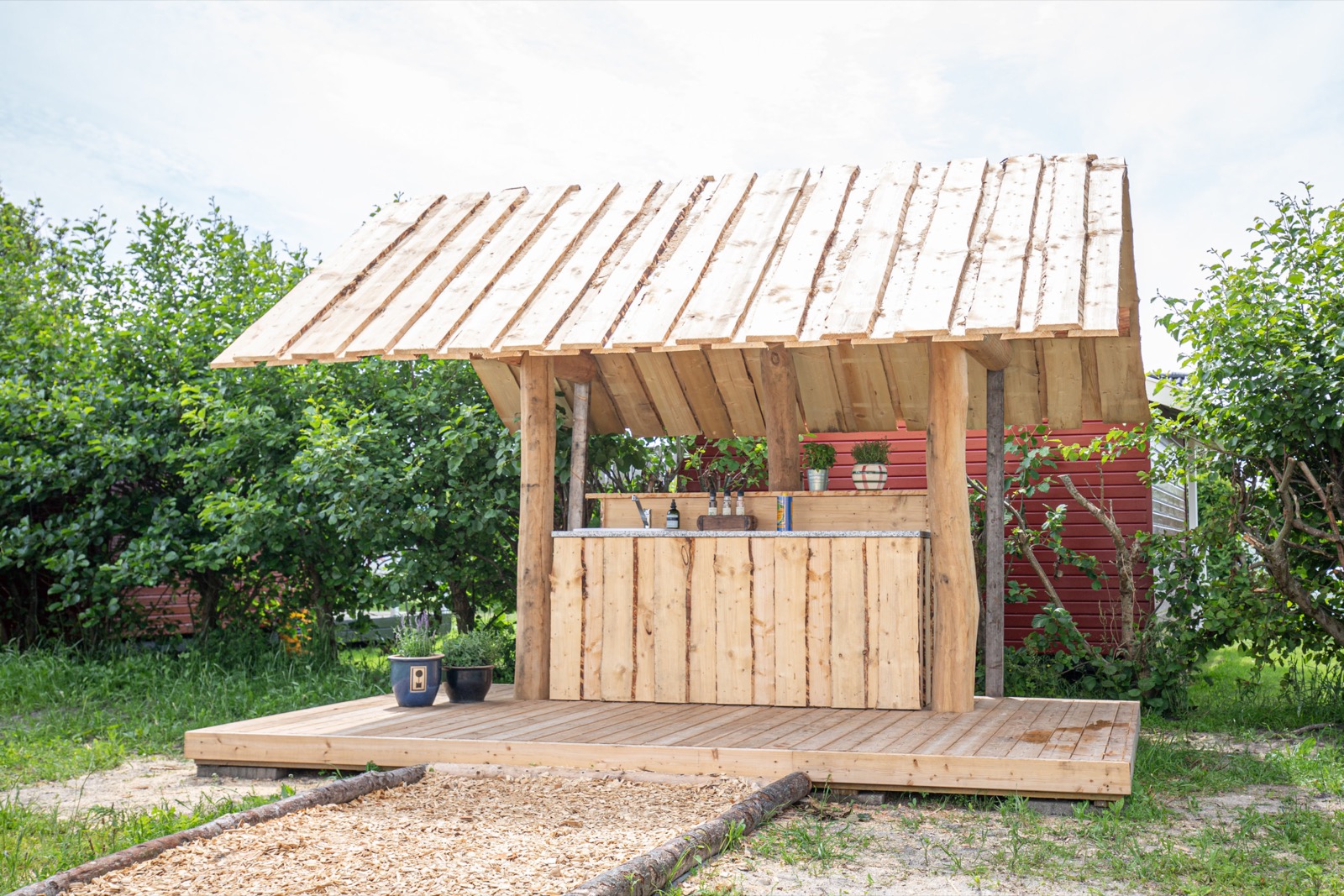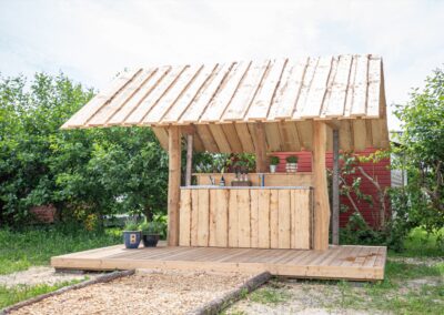 • Vi har selv lavet sengebordet af træ fældet her på campingpladsen