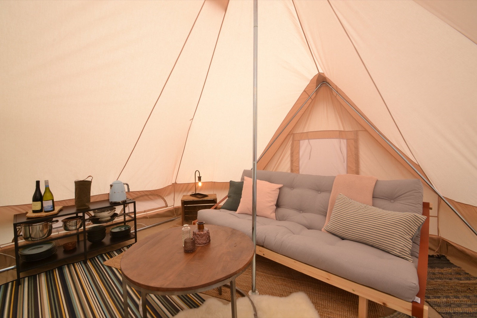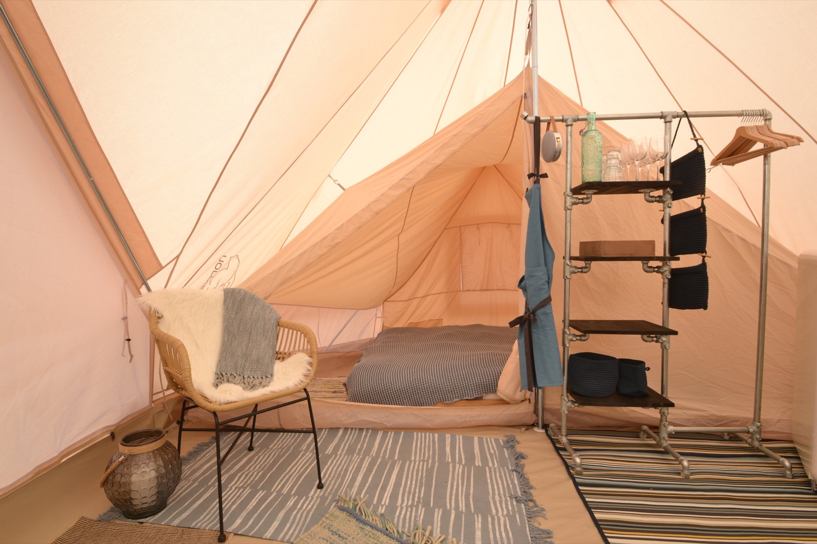 Vi har prøvet at gøre noget helt særligt ud af indretningen med gode produkter så pas godt på det. Vi håber alle får en hel særlig oplevelse her i vores glamping telte.