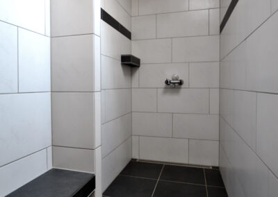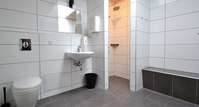 Den ene servicebygning er blevet renoveret i 2014 og indeholder nu 3 separate toiletter med håndvask, 4 store bruserum og 3 store dejlige familierum.
